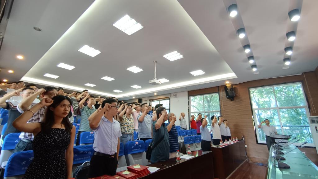 党委书记欧旭理的带领下重温入党誓词,坚定理想信念。