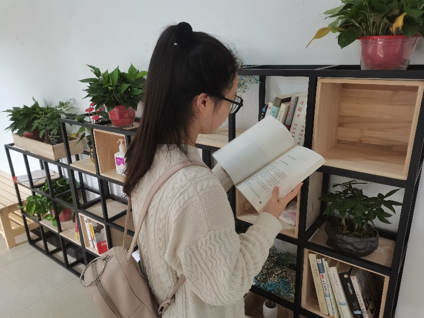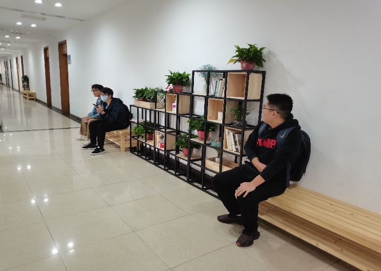林明恪同学说布置完后这空旷的楼道变得温馨起来,自己在科研之余也能悠闲的坐在椅子上沉迷于书海之中享受读书带来的美好,不仅是喜欢这些绿植和书,更喜欢黄色直播