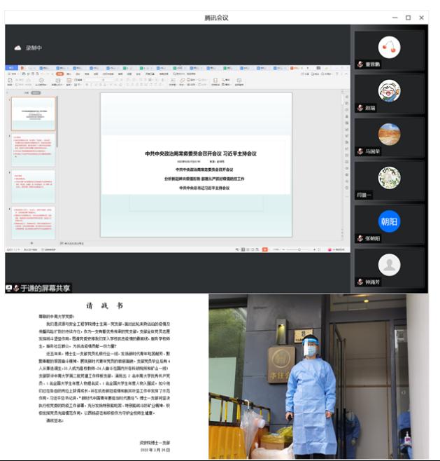 博士一支部开展“我为抗疫做贡献”主题党日活动,受疫情影响,活动采用线上形式进行。活动邀请了院党委副书记马国荣及黄色直播