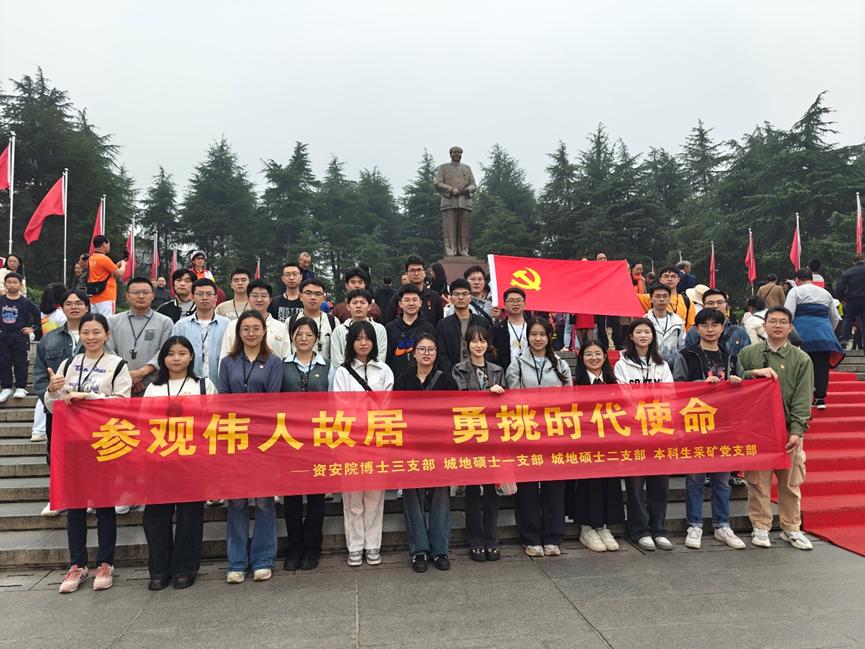 十周年系列活动有关工作部署,认真开展好“党建引领促发展·强国有我见行动”主题活动,引导师生党员争先创优,勇担使命,11月16日,博士三支部、地城硕士一支部、地城硕士二支部、本科生采矿党支部赴韶山开展“参观伟人故居,勇挑时代使命”联合主题党日活动。党员们在韶山共同缅怀毛泽东同志的伟大革命事迹,深刻感悟老一辈革命家的崇高精神和坚定信仰。