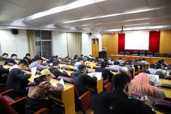 将统一组织学习并补考。考试内容涉及校风校训、安全教育、教学管理制度、违纪处理等内容。考试时,研究生辅导员孙瀚来到各考场巡视并告诫同学们要认真答题、遵守考试纪律。在这场考试中可以看出同学们在考前都做了充足的准备,大家都在认真作答。整场考试纪律良好、考试氛围浓厚。
