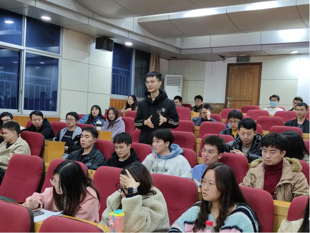 博士研究生陈永俊、郭腾飞、史瞻銘和硕士研究生张炳一四位同学为同学们分享科研论文写作经验和科研心得。