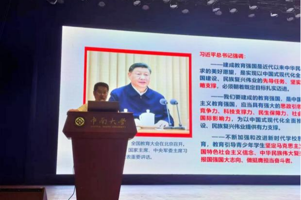 围绕“勇于担当奋斗,扣好‘第一粒扣子’”,岳龙副书记从厚植爱国情怀、践行使命担当、失志青春奋斗三个角度,号召中南学子要为中华崛起而读书、为民族复兴而拼搏、为祖国统一而奋斗,为全面建设社会主义现代化国家、全面推进中华民族伟大复兴贡献智慧和力量。不负中南、不负青春、不负时代!