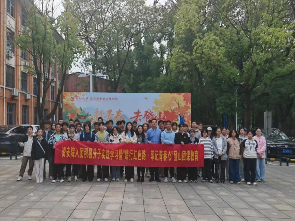 在岳麓山校区采矿楼前坪举办入团积极分子实践学习暨“踏行红色路·印记青春心”登山团课教育。本次活动由院团委书记丁德孝、副书记王子涵老师带队,全体入团积极分子参加。