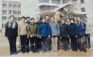 图3 1988年,通风教研室杨华保老师从德国访学回校时与教研室老师和系领导一起在采矿楼前合影