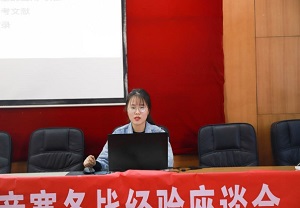 19级硕士研究生苏红,具体分析了在竞赛论文撰写的过程中可能遇到的问题,苏红同学指出,在论文的撰写过程中要有详有略,突出重点,切忌千篇一律。在回答问题环节,三位同学针对本科生和研究生的不同情况给出了在团队合作、参考书籍以及相关软件等方面详细的一些建议,并表示会在今后的学习生活中继续与大家保持交流,不断学习。