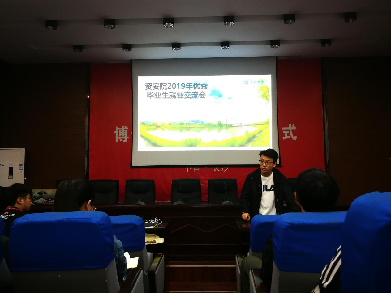 就业交流会于采矿楼T302报告厅顺利举行。资安院16级辅导员侯霄峰老师出席交流会,各年级同学积极报名参加。
