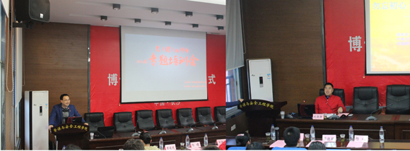 研究生辅导员于谦老师担任主持。活动伊始,于老师介绍了到场嘉宾,并对本学期的骨干素质拓展训练活动进行简单的介绍。随后就进入到本次活动的第一个专题:“勿忘初心,坚定理想,勇于担当——与学生领袖共勉”,本专题由刘新庚教授主讲。刘教授以“党的最终目标与现阶段的任务”为题发表了讲话,他表示,我党以共产主义为最终目标,以实现社会主义现代化和中华民族伟大复兴为总任务,所有共产党人务必要“不忘初心,继续前进”。