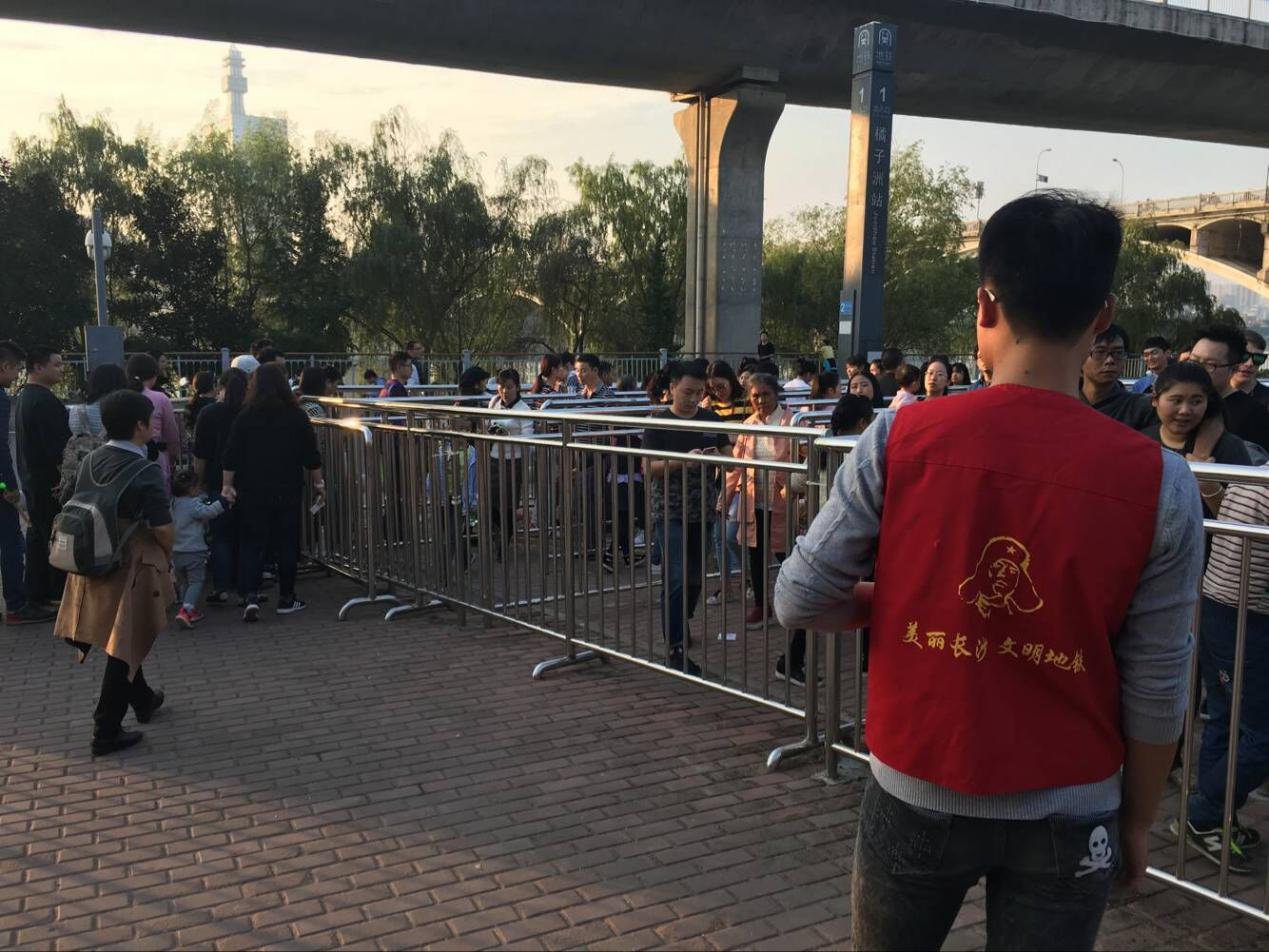 时间来到下午六点,晚高峰的到来令橘子洲地铁站发生乘客爆满的现象。资安院的志愿者接受工作人员指令,全体成员分为两组出动,一组留在地铁站引导,另一组到景区地铁口帮助限制客流量,不仅使地铁站秩序井然,而且也让乘客们在焦急的等待中感受到了一点温暖。