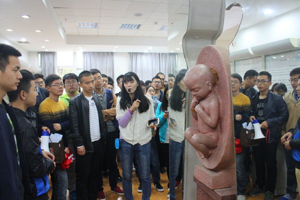 全体研究生新生在讲解员的带领下有序进入展馆进行参观。讲解员首先对展馆入口处代表人类生命孕育的工艺品进行了介绍,指出了我们本次活动的主旨是“生命 感恩”;随后,讲解员为大家分别介绍了生命从受精卵开始直至出生几个不同发育阶段的人体胚胎标本,让大家具体了解到一个生命在母体内是如何发育生长的;最后,讲解员向大家介绍了展馆内不同人体组织系统的病变器官的形态及其病变缘由,这些组织系统包括消化系统、泌尿系统、呼吸系统、生殖系统等。