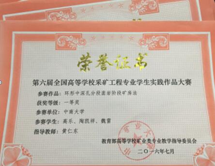 选送的24件参赛作品中17项作品获奖,包括一等奖3项、二等奖5项、三等奖9项。由本科13级学生杨学鑫、张海军、丁啸天所组团队的参赛作品《钾盐矿地下旱采&淋选一体化开采方案模型》、由13、14级学生赵宇喆、黄煜钊、陈超、戴修山、陈韦宗所组团队的参赛作品《智能型无人凿岩台车物理模型》以及由本科13级学生高乐、陶凯祥、魏雷所组团队的参赛作品《环形中深孔分段凿岩阶段矿房法》获得采矿物理模型类一等奖。本届比赛是资安院获奖项目最多、参与人员最广的一次,取得了历史最好成绩。