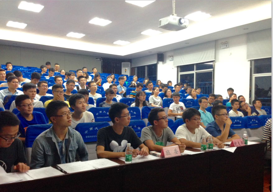 2016年9月10日晚7点30分,资安院13级“文明示范寝室”评选答辩暨总结表彰大会在校本部采矿楼302举行。13级班导师彭述权老师、杨珊老师,学工办主任李欢老师、辅导员朱玮老师、刘强老师以及优秀学生代表到场参会并担任评委。