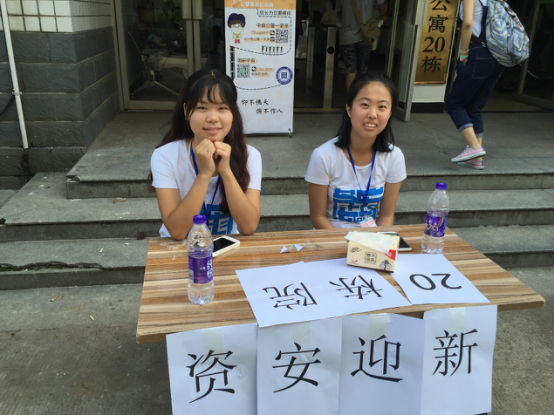 在升华公寓12栋和20栋都设置了迎新点。迎新志愿者们轮班在迎新点处为新生和新生家长提供帮助。为了让新生及家长第一时间感受到黄色直播