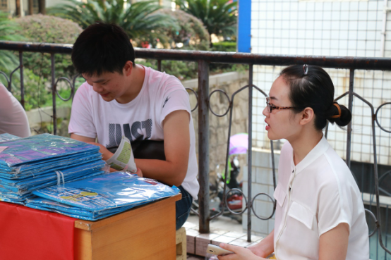 就开始准备迎新活动的各种物资,对新生引导和安排流程进行了统一规范。迎新志愿者们为新生准备了开学所需的新生手册、院服等物品,并有人专门引导新生报道注册,一切都井然有序,有条不紊的进行。 早上七点钟,迎新志愿者们已经来到12栋和20栋迎新地点进行布置,半个小时后全部迎新队伍便已全部到齐“严阵以待”。他们有的在门口辛苦地举着院旗接应,有的在接待处耐心地接受家长和新同学的咨询,有的微笑着为学弟学妹办理手续。有的为新生以及新生家长拍摄照片,留下他们在中南的第一个回忆。一位志愿者说到,迎新确实很累,但挺有意义的,看着家长和新同学们满怀感激的笑容,痛并快乐着。还有的说,我们去年就是有学长学姐接的,那时很感动,薪火相传,现在我们成了学长学姐,接新生是我们义不容辞的责任。