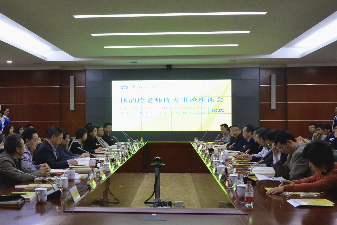 党委书记李顺求介绍了林韵玲老师的生平事迹。林韵玲老师31年如一日,坚守在思想政治工作一线,坚持原则、严爱相济、兢兢业业、 无私奉献,为国家培养了大批素质过硬、全面发展的优秀人才。她退休后又为学校老年大学义务工作了10多年,把满腔热情和全部精力都献给了教育事业。 2014年10月,林韵玲老师病逝后,部分校友组成纪念文集编纂小组,收集、编纂亲朋师生回忆文章。在学校各部门的协助下,共32万字的《用一生诠释师魂 ——林韵玲纪念文集》终于在日前出版发行,其中学生回忆文章142篇。在此过程中,林韵玲老师的丈夫陈寿如教授更是感念妻子工作的重大意义,决意捐资设立 “优秀辅导员奖励基金”,以奖励辅导员队伍中的优秀工作者,继续林韵玲老师未尽的事业。