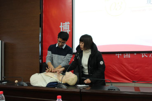的王晶同学在开幕式上简要对BLS心肺复苏知识进行了讲解,当场演示了心肺复苏与人工急救技巧。