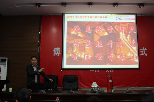 党委孙胜副书记、学工办主任李欢老师及于谦老师等出席了此次活动。湖南省消防协会科普宣教处教员主任李兵教官作为特邀嘉宾在活动上作了精彩报告。
