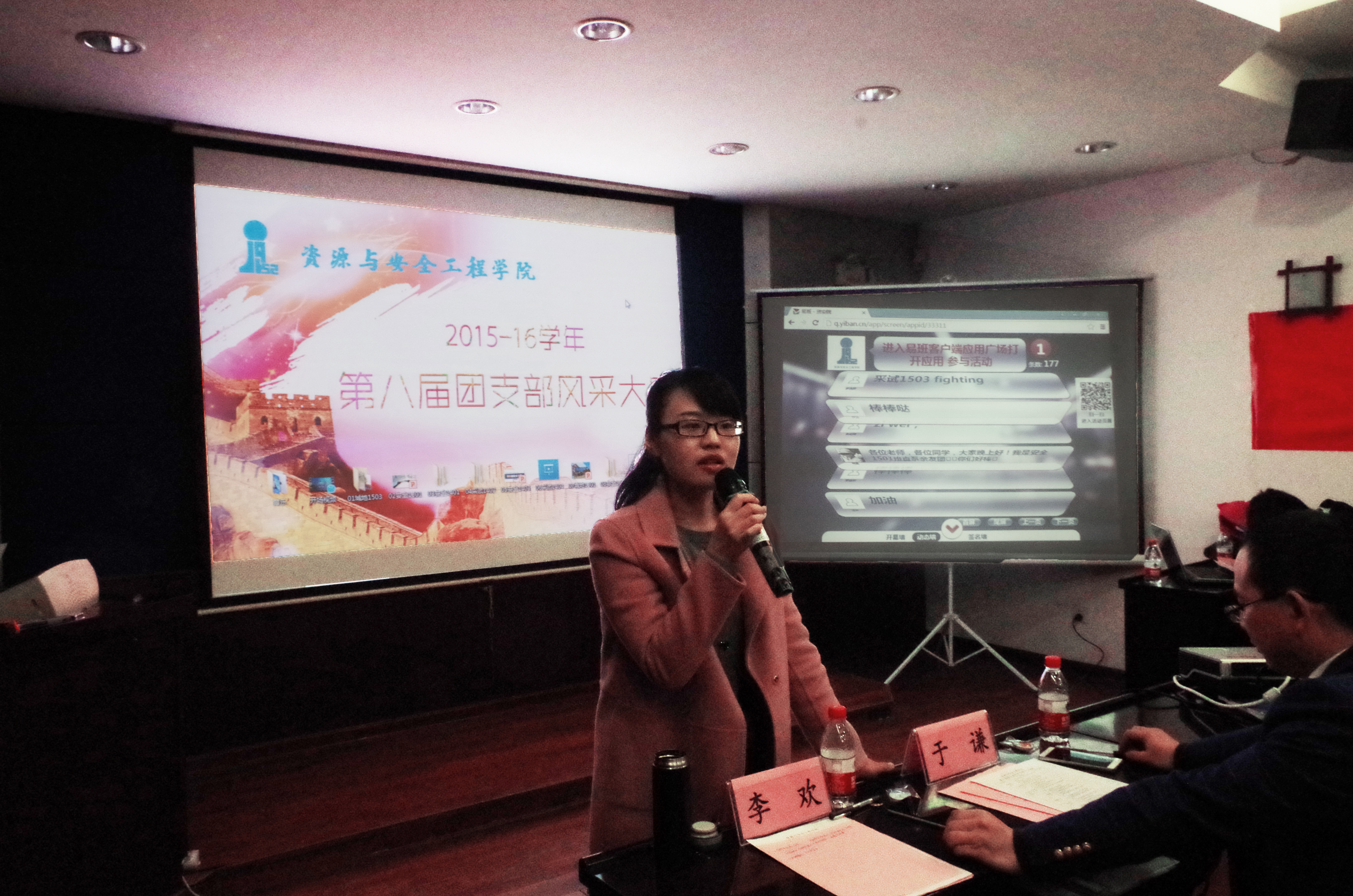 第八届团支部风采展示大赛在采矿楼224报告厅、采矿楼301报告厅举行。14、15级全体团支部参与此次团支部风采大赛,资安院学工办主任李欢老师、资安院分团委书记朱玮老师,13级辅导员刘强老师、院学工办于谦老师,15级辅导员郑强伟老师作为参赛评委出席了本次大赛。
