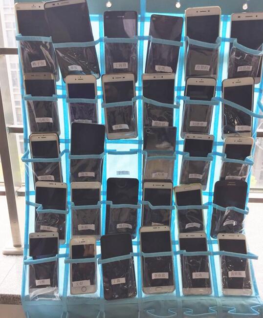 来到教室,同学们都自觉的将各自的手机放在提供的“手机保管袋”中,然后再到座位上准备上课。整个过程井然有序,展现了同学们较高的素质和极强的自觉性。