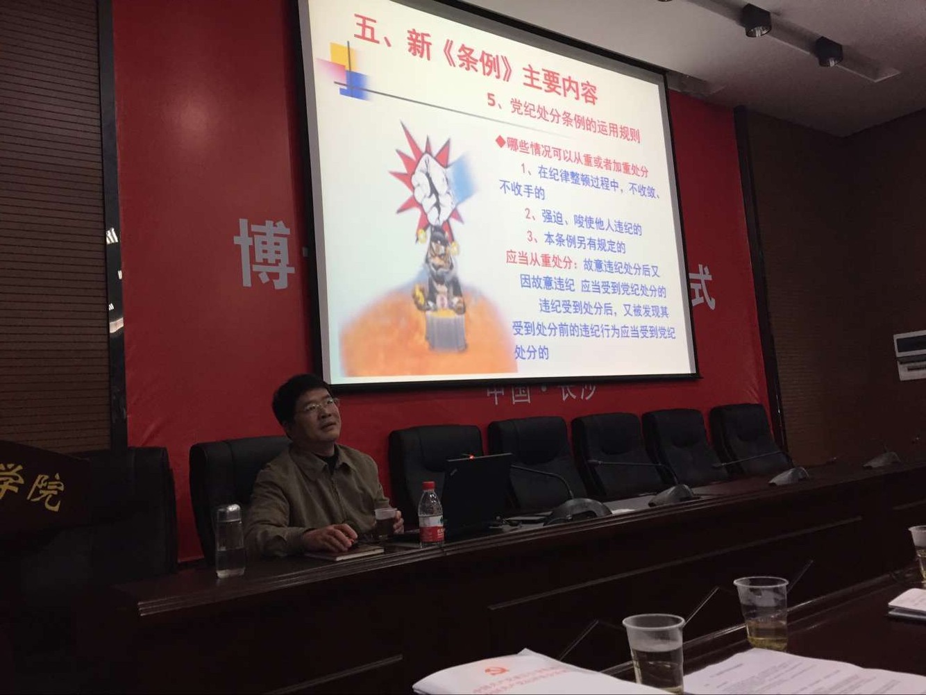 报告会上,李书记详细介绍了两部法规的修订背景和修订过程,结合典型案例对两部法规的主要内容进行了全面深入解读,为广大党员和党组织严明纪律、自觉践行三严三实上了一堂生动的党课。