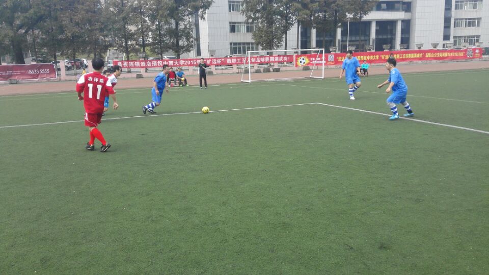 首届“旷远杯”教职工五人制足球赛资安院VS冶环院的比赛在我校校本部足球场进行,本次参赛的有陈明老师,杨珊老师,张德民老师,朱玮老师,刘强老师和郑强伟老师。院党委李顺求书记书记到场观战并给资安战队加油打气,经过队员们的奋力拼搏,资安代表队最终以2:1的成绩战胜了冶环院代表队。