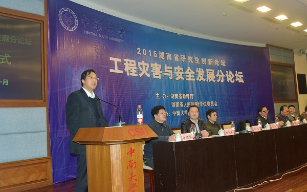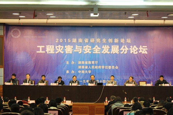 共同承办的2015湖南省研究生创新论坛工程灾害与安全发展分论坛,在我校科教大楼国际报告厅举行了隆重的开幕式暨学术报告大会。
