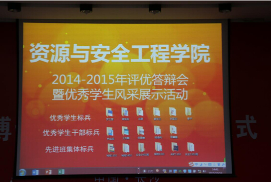 学年评优答辩会暨优秀学生风采展示活动在采矿楼302报告厅举行。院党委孙胜副书记、学工办主任李欢老师莅临本次答辩会,13级辅导员刘强老师、14级辅导员岳龙老师、15级辅导员郑强伟老师以及院学工办于谦老师、学工办委员李小松、彭臻、第14届团委学生会主席王天驰出席并担任评委。