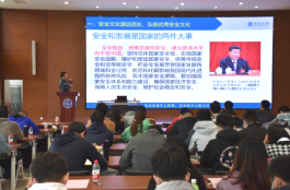 易险峰副部长致开幕辞。他表示,学校一直以来高度重视学生安全教育工作,结合我校国家级特色专业安全工程,连续12年开展具有中南特色的安全文化活动,切切实实地让“安全”走近师生、融入校园。他向在座师生提出三点希望:一要大力践行安全观;二要积极助力疫情防控;三要将卫生安全活动落到实处。