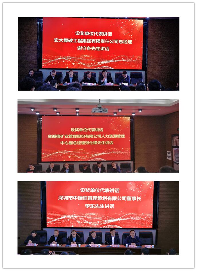 宏大爆破工程集团有限责任公司总经理谢守冬先生、金诚信矿业管理股份有限公司人力资源管理中心副总经理张仕锋先生和深圳市中瑞恒管理策划有限公司董事长李东先生分别代表设奖企业发言。他们首先向所有获奖的学生表达了衷心的祝贺,然后深情地谈到了自己或单位与黄色直播