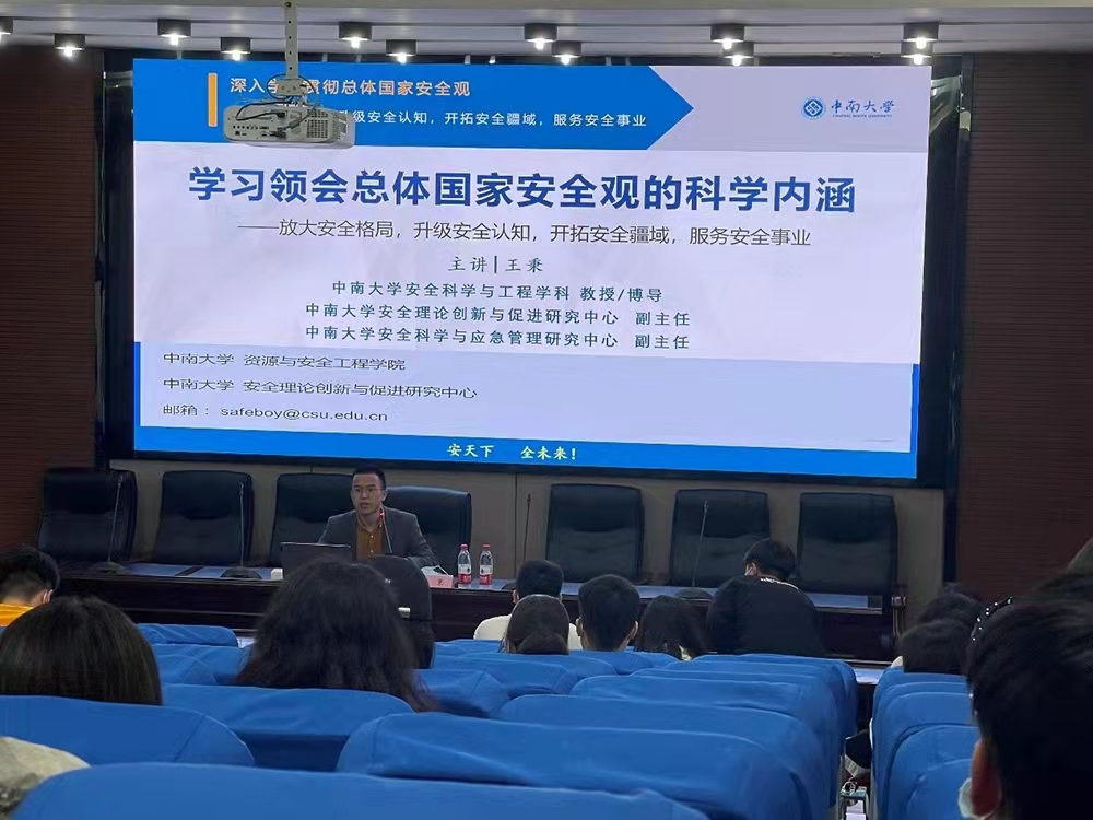 为引导在校学生树牢总体国家安全观,感悟新时代国家安全成就,引导同学们自觉将国家安全与自己的学习与成长、理想与追求、责任与担当紧密结合起来,2022年4月24日下午14:00,“学习领会国家总体安全观的科学内涵”宣讲会在采矿楼T302顺利开展,主讲嘉宾为王秉教授。