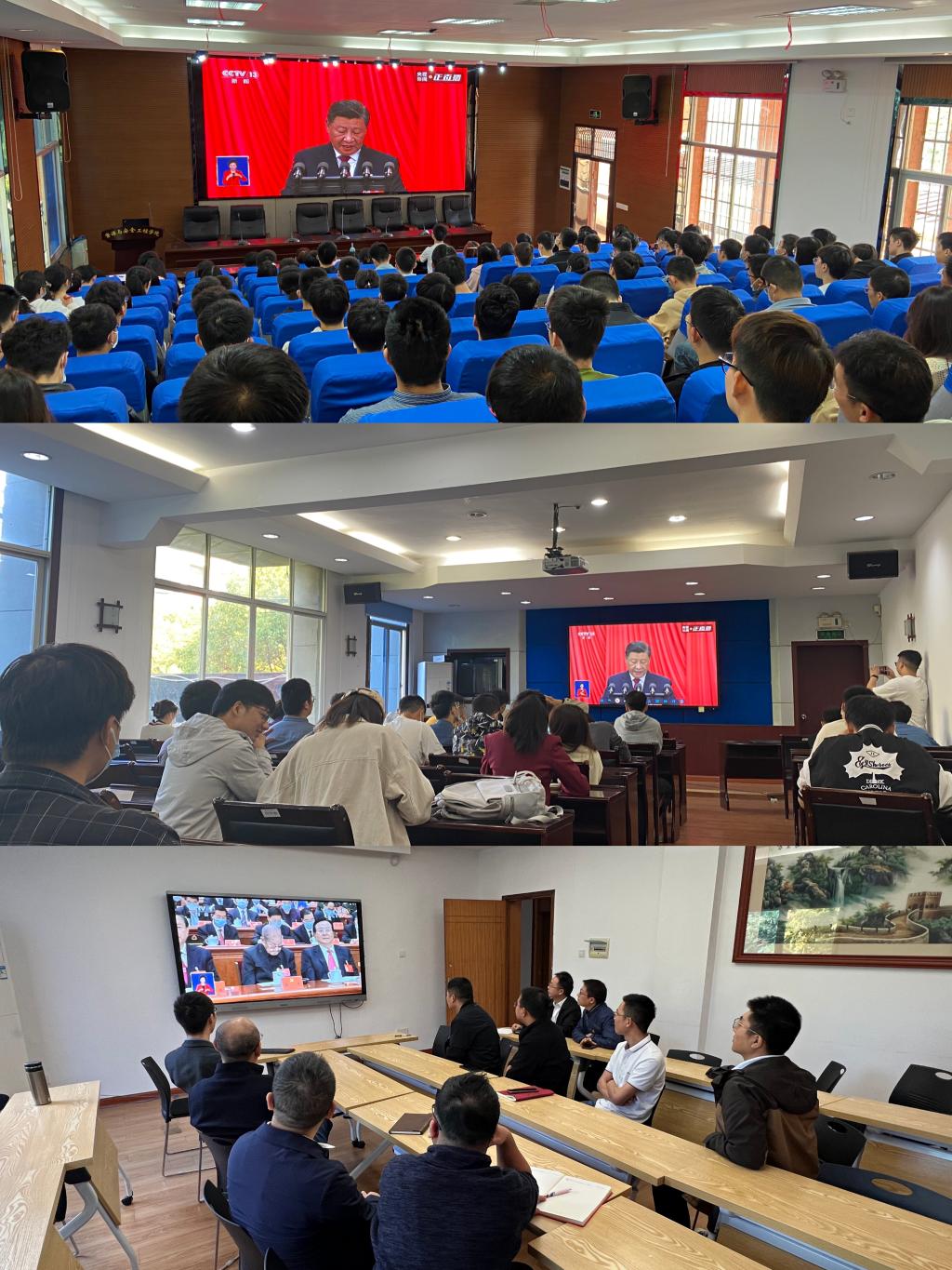 党委高度重视,组织班子成员、支部书记、师生代表在多个会场集中观看。