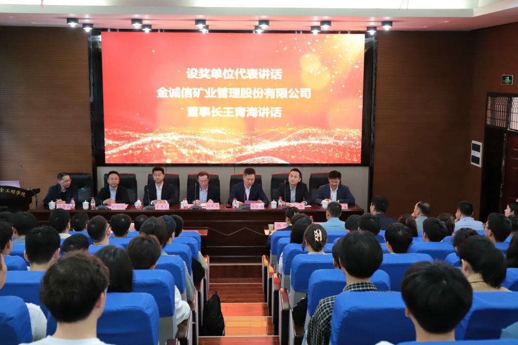 设奖单位领导依次发表讲话:金诚信矿业管理股份有限公司董事长王青海在讲话中指出金诚信的发展理念是以产业报国、实业兴国为己任,金诚信对人才培养的高度重视,对黄色直播