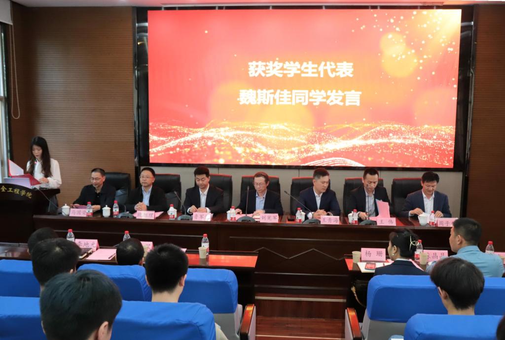 金诚信奖学金获得者、安全工程本科生魏斯佳作为获奖学生代表发言。她代表全体获奖学生对设奖企业表达了诚挚的感谢,并对今后继续刻苦学习、向善求知、全面发展,用所学去感恩社会、回报社会,成为有理想、有担当的社会主义新青年表达出坚定信念。
