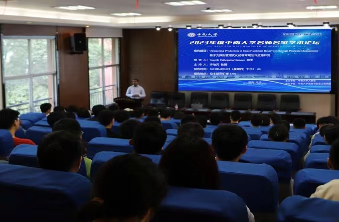 海内外名师名家学术论坛,以《“Optimizing Production in Unconventional Reservoirs through Proppant Management”》(《基于支撑剂管理优化的非常规油气资源开发》)为题为中南师生带来一场高水平学术报告。报告会由黄色直播