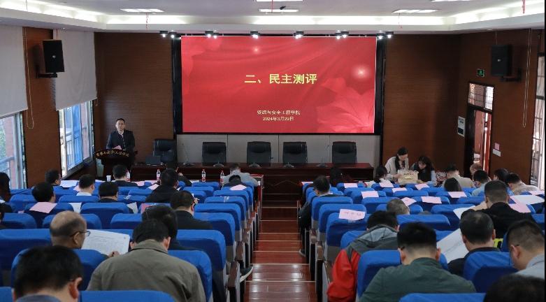 领导班子进行民主测评。秦进书记向教职工介绍了填写民主测评表单的注意事项,传达了本项议程的重要意义,强调本次会议旨在推动建设一支政治过硬、适应新时代要求、具备领导现代化建设能力的领导班子队伍。