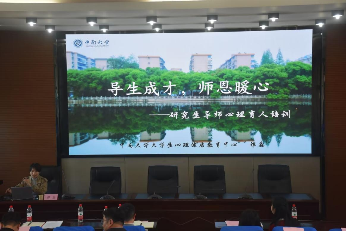 在采矿楼T302开展了主题为“导生成才,师恩暖心”研究生导师心理育人培训会。本次培训会主讲人为学校心理健康教育中心专职教师谭鑫老师,全体院领导、研究生导师、辅导员参加,会议由秦进书记主持。