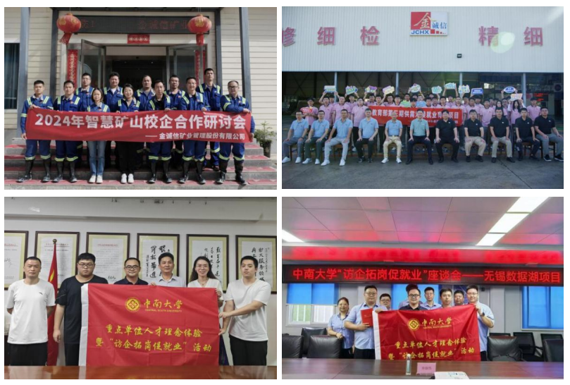 领导班子带队青年学子访企拓岗,院党委秦进书记带队赴中铁第四勘察设计院集团有限公司等单位,周子龙院长带队赴广晟有色金属股份有限公司等单位,岳龙副书记带队前往中国水利水电第七工程局等单位,邓红卫副院长带队前往中钢集团马鞍山矿山研究院等单位,黄锐副院长带队前往中石化长岭公司等单位,李地元副院长带队赴中建五局等单位,尹土兵副院长带队前往西藏华泰龙矿业开发有限公司等单位。通过走访企业,实践团对各企业发展历史、建设项目和人才培养需求等方面进行了解,双方就人才培养、就业指导等方面开展交流。秦进书记强调,访企拓岗是强化校企衔接、深化校企合作的重要途径,也是提升人才培养质量、促进毕业生高质量就业的迫切需求,希望校企双方在已有合作基础上,聚焦人才培养、科学研究、成果转化等领域,进一步拓宽合作广度、深度,大力推动产教融合、产学研合作。