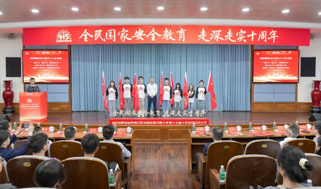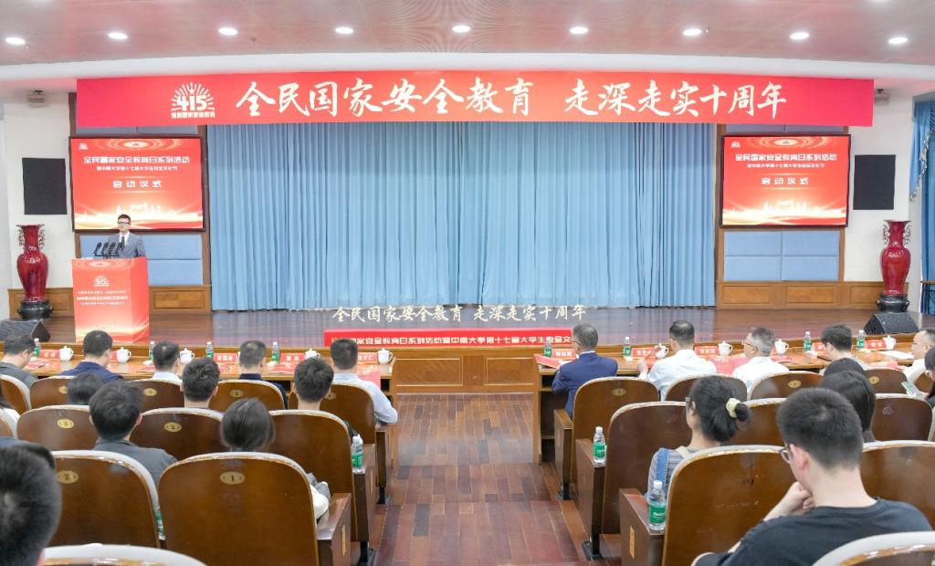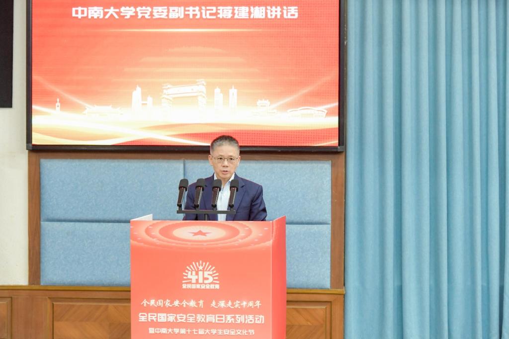 第十七届大学生安全文化节启动仪式在岳麓山校区国际报告厅举行。本次活动由学校联合湖南省委办公厅、长沙市委办公室、湖南湘江新区党政综合部共同主办,校学工部、保卫部、团委、资安院共同承办。校党委副书记蒋建湘、学工部部长欧旭理、保卫部部长张国栋、团委书记刘正宗、资安院党委书记秦进以及湖南省委办公厅、长沙市委办公室、湖南湘江新区党工委相关领导出席,14所驻湘江新区高校师生代表500余人参加。