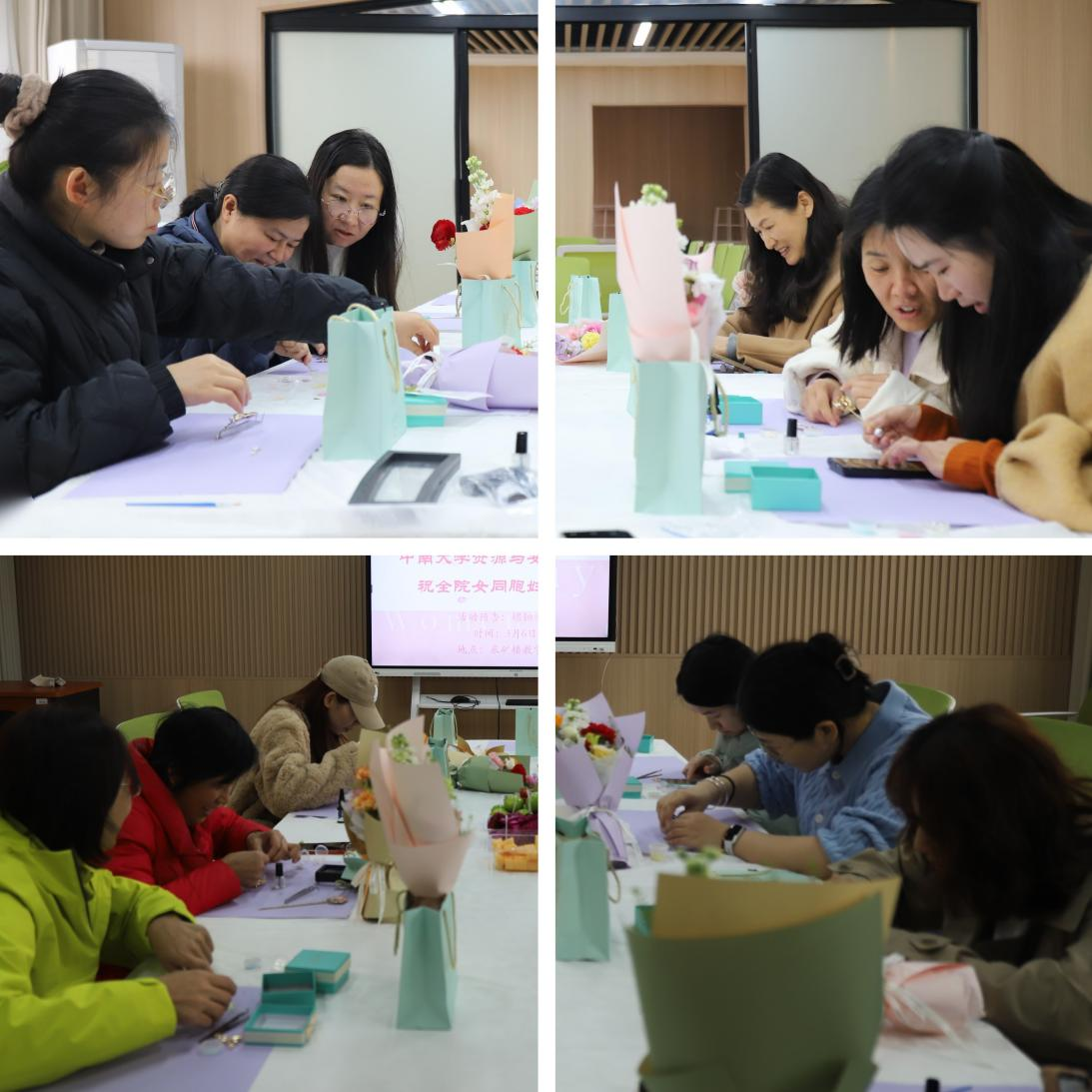 女教职工欢聚一堂,在指尖艺术中感受非遗魅力,共度温馨节日。